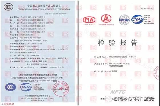 鶴山市恒保防火玻璃廠有限公司經過多年努力,終于解決這一行業難題:3000mmX2000mm超大尺寸版面,GFC 3020-D-A1.50(甲級)鋼質隔熱防火窗于2018年6月29日成功通過國家防火建筑材質量監督檢驗中心型式試驗,取得檢驗報告,并于2018年09月11日獲得國家強制性CCC認證證書(證書號2018081806008738)。整窗都能滿足防火完整性和防火隔熱性1.5小時的要求,既符合建筑設計防火規范的要求,又具有窗的通透性,美觀實用。完美解決了地鐵高鐵消防控制室超大甲級防火觀察窗合法化的問題!
