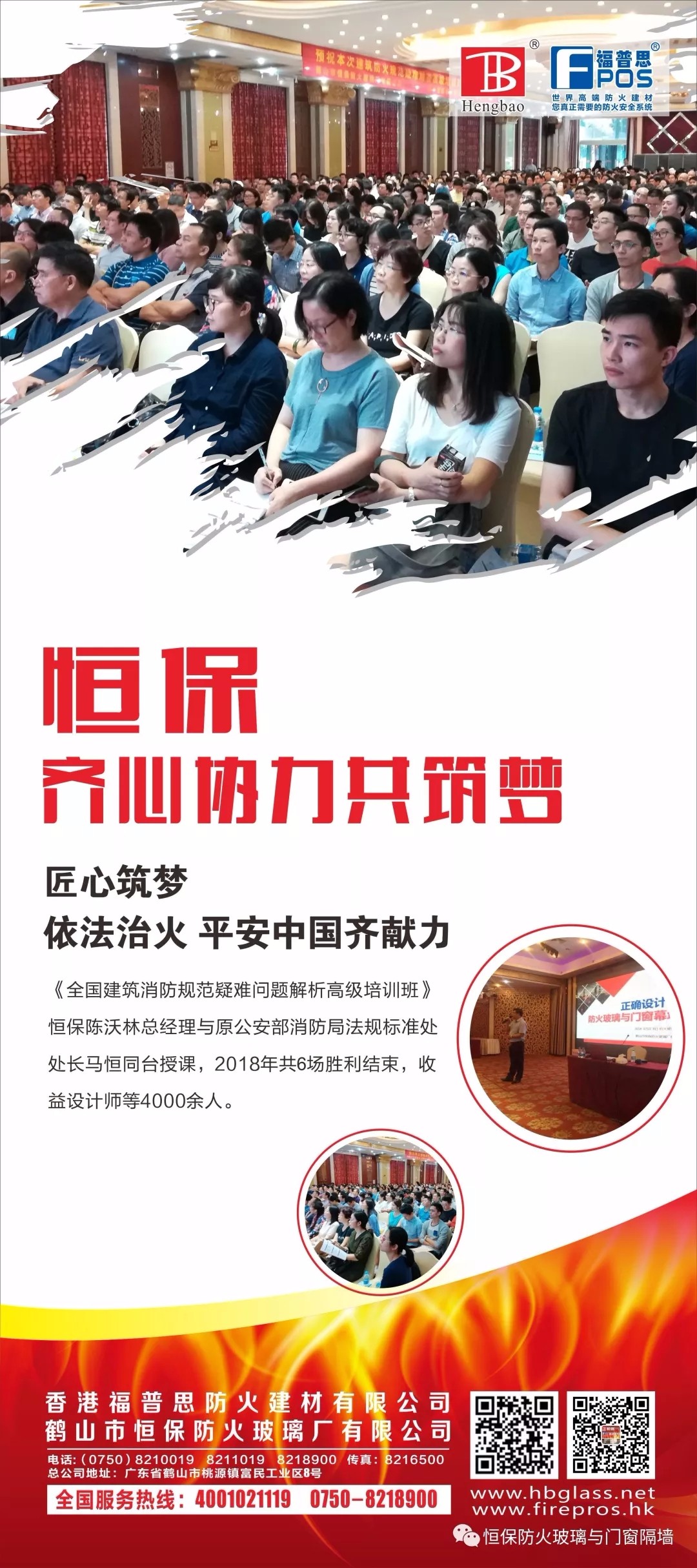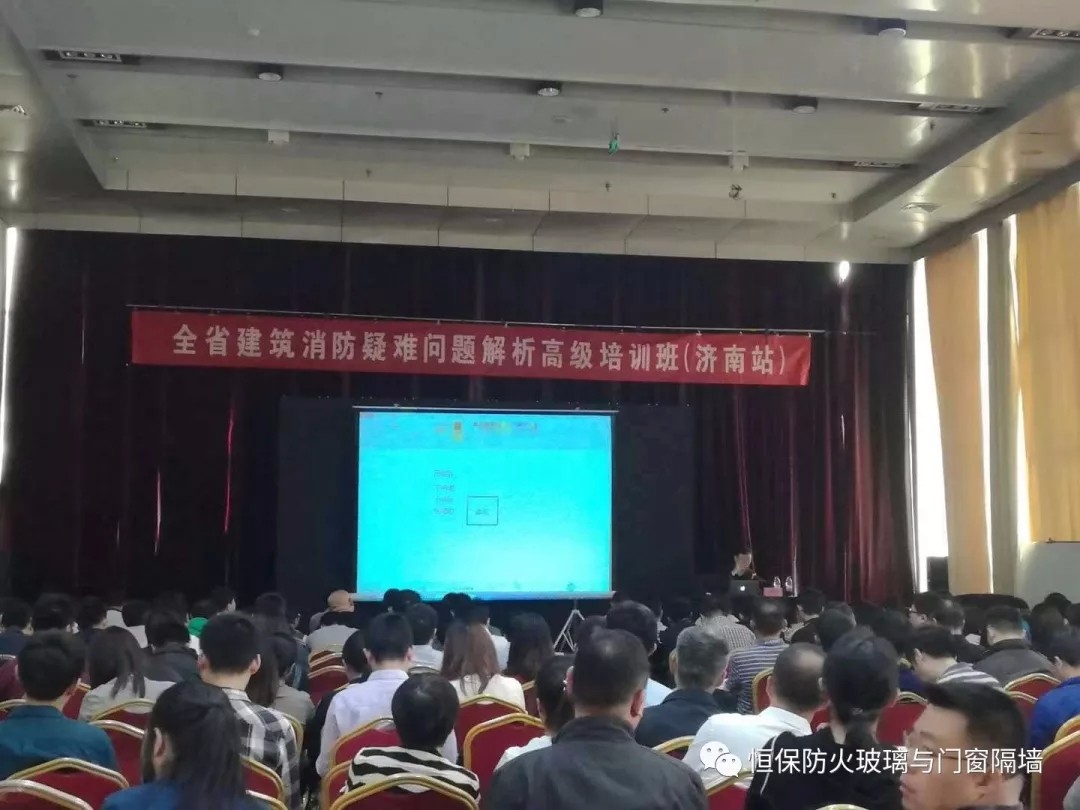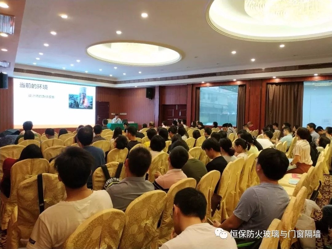 鶴山市恒保防火玻璃廠有限公司2018年與“中國建筑設計研究院人才培訓中心”原公安消防局法制標準處處長馬恒一起分別廣東深圳、湖南長沙、湖北武漢、廣西南、山東濟南、廣東廣州,共同舉辦了6場《全省建筑消防規范疑難問題解析高級培訓班》,所到之處深受到設計師們的歡迎,受益設計師達4000多人次。