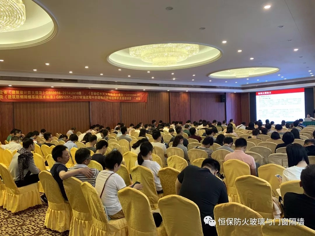 本次國家性防火規范高級培訓邀請了多方有實力,國內外知名的行業專家、業界人士以及專家個人參與!而鶴山市恒保防火玻璃廠有限公司作為防火玻璃國標參編企業、防火玻璃專家、防火門窗專家,亦受邀出席了本次活動,并且在現場分享了恒保公司21年來專業研究與生產防火玻璃、防火玻璃門窗系統等的經驗,為與會人員提供了珍貴的價值。