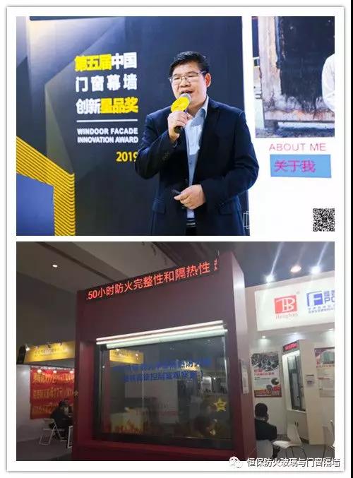 在這次展會中,恒保公司榮獲兩大獎項,獲各界客商對恒保的肯定和實力的彰顯。在第25屆鋁門窗幕墻新產品博覽會歡迎晚宴暨第5屆中國門窗幕墻創新星品獎頒獎典禮中,鶴山恒保榮獲2019年度“創新新品獎”。3月5日上午,陳沃林總經理并在星品匯現場演講《CCC認證超大甲級防火窗(地鐵高鐵控制室觀察窗)》。恒保GFC3020超大甲級防火窗,具有非常好的防火隔熱性能,完全滿足甲級防火窗的要求,且10年以上不發黃、不發白穩定可靠。認證尺寸寬3000mm高2000mm,是目前中國已獲國家檢驗報告和CCC強制性認證的單塊玻璃尺寸最大的防火窗;整窗都滿足防火完整性和隔熱性1.5小時的要求,既符合建筑設計防火規范條例,又滿足窗的通透性,美觀實用。完美解決了地鐵高鐵消防控制室超大甲級防火觀察窗合法化的問題,是地鐵高鐵等重要場所設備用房的防火觀察窗必選產品。