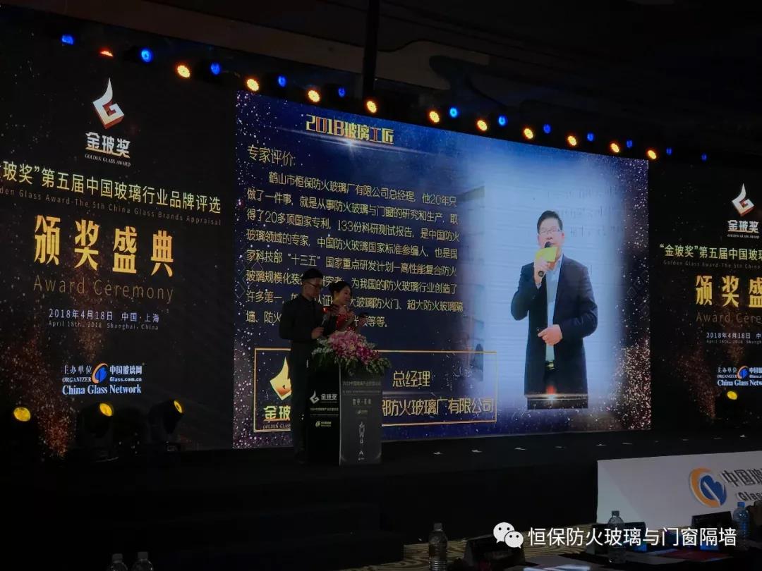 鶴山市恒保防火玻璃廠有限公司總經理陳沃林先生榮獲“玻璃工匠”獎,他20年只做了一件事,就是從事防火玻璃與門窗的研究和生產,取得了20多項國家專利,133份科研測試報告,是中國防火玻璃領域的專家,中國防火玻璃國家標準參編人,也是國家科技部“十三五”國家重點研發計劃-高性能復合防火玻璃研發與產業化的研究者;為我國的防火玻璃行業創造了許多標桿性的里程碑:如:3C認證的高品質水晶硅防火玻璃、超大玻璃防火門、超大防火玻璃隔墻、防火玻璃承重地臺和采光頂等等。