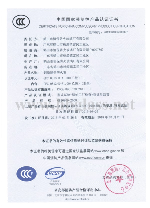 中國國家強制性產品認證書1